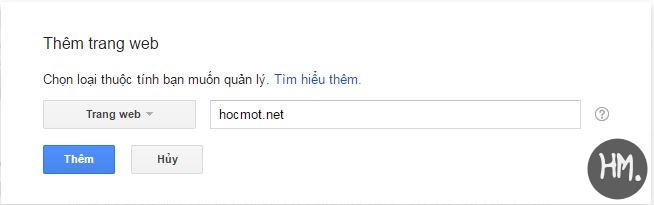 Đăng nhập bằng tài khoản Gmail của bạn ( tất cả các sản phẩm của google đều dùng chung tài khoản này). Thêm một trang web mới trong công cụ Google Webmaster Tool