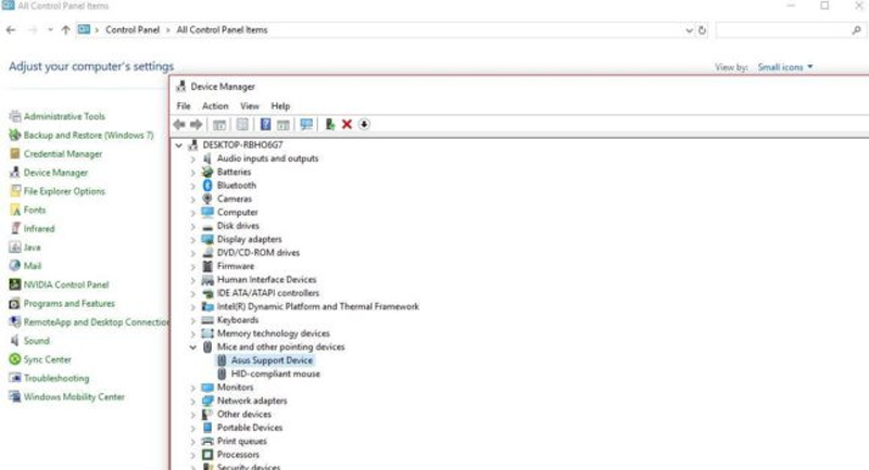Bước 3: Click chuột phải vào tên chuột của bạn, ví dụ như "Asus Support Device", và chọn "Update driver" hoặc "Uninstall device" nếu bạn muốn gỡ bỏ Driver cũ để cài đặt lại Driver mới.