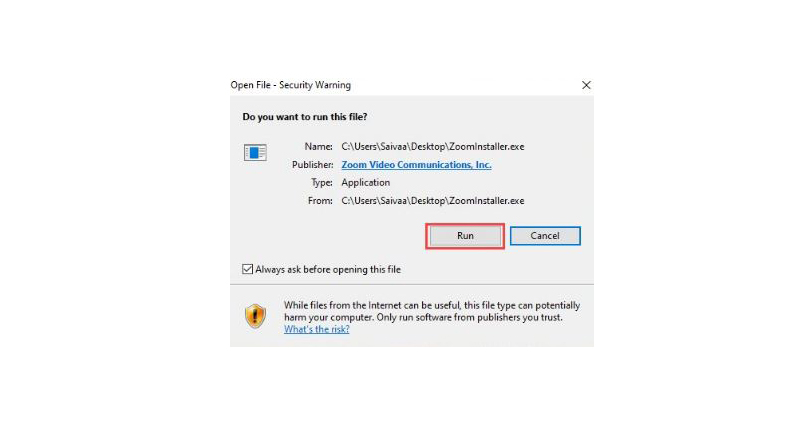 Bước 3: Mở file Zoom vừa tải xuống và chọn "Run" để tiến hành cài đặt.
