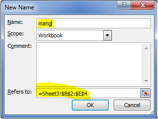 - Formulas\ Define Name\ Define Name… đặt tên.